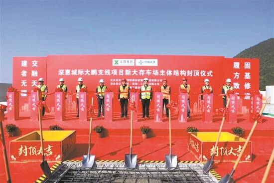 近日,深惠城际大鹏支线新大存车场主体结构封顶。据悉,新大存车场位于大鹏新区南澳新大社区,东侧为大鹏半岛地质公园,南侧为地质公园停车场,为整条线路列车的检修车站,占地面积14万平方米,建筑面积8万平方米,施工涵盖桩基、承台、立柱、盖板等内容。