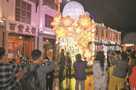海外侨胞也专程返乡过春节、过元宵,在小公园安平路“南洋掠影”风情街上,一组组以泰国、马来西亚、新加坡、印尼、柬埔寨、老挝等国家为主题的美陈灯展,让海内外潮人惊喜不已,充分释放“百年侨乡”的魅力,花灯圆月下,一幅幅独具潮汕特色的欢乐团圆图也接连定格。