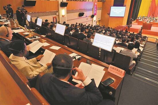 此次会议率先启用全国首个政务级AI大模型同声传译软件 羊城晚报记者 王磊 摄