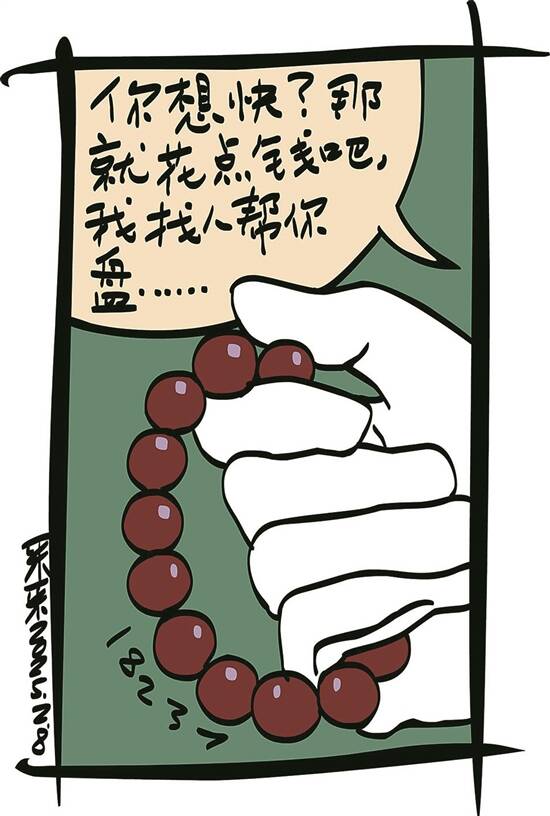 听说过买彩票有代买,没想到玩手串还有代盘的。阿炎觉得有意思,便选了条最坚硬的木串请阿跳帮忙送去处理。