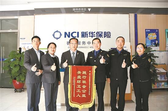 近日,佛山市禅城区城市管理和综合执法局向新华保险佛山中心支公司赠送了“关爱环卫工人 践行社会公益”的锦旗,感谢该公司长期以来对环卫工人的关爱。