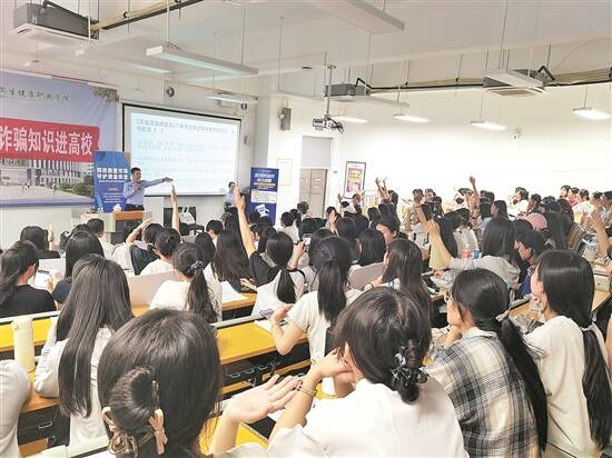 中国人民银行潮州市分行和潮州市反诈骗中心专家结合学生群体特点,以深入浅出、通俗易懂的语言开展讲座,精选“兼职跑分”等典型案例,以案为鉴提醒学生远离出租出借账户等违法犯罪行为。讲座中还设置了“知识问答”互动环节,学生们踊跃答题,在轻松愉快的氛围中学有所获。