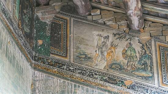 漫步围屋,目光总不由自主地被房梁门窗雕花和壁画吸引。屋檐下雕满龙凤、八仙贺寿、四季花鸟等吉祥图案,每一处都栩栩如生。室内有些木构件至今仍保存完好,图案多样,形象生动,就连两扇木窗花纹也千变万化,各有千秋。内堂横梁上,还镌刻着精美字画,其中“奕世”“其昌”四个隶体字,寄托着先祖对子孙后代的殷切期望。