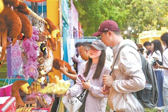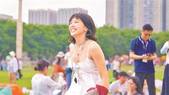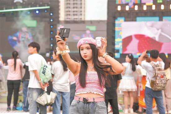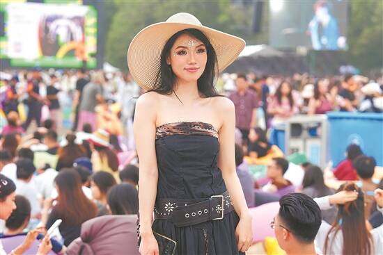 活动现场,数万名年轻人相聚于此,共同感受音乐的魅力。摇滚、民谣、嘻哈等不同风格的音乐轮番上演,乐迷们随着节奏摇摆、跳跃,现场气氛热烈,年轻乐迷成为主力军。笔者观察到,多数观众在着装选择上颇具心思,荧光色系T恤、破洞牛仔裤、扎染卫衣等潮流单品频繁出现,搭配金属配饰、夸张耳环等细节装饰。部分观众还精心设计了主题妆容,与音乐节氛围相得益彰,一位来自深圳的乐迷说:“在这里不仅听到了喜欢的歌手的演唱,更能感受到现场的热情和活力,这才是青春该有的样子。”整体来看,明亮色彩与个性化搭配成为音乐节乐迷们的着装特征,展现出当代年轻人追求自我表达的生活态度。