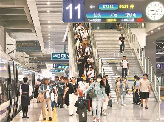 羊城晚报讯 记者赵映光,通讯员林鹏伟、袁翼伦摄影报道:“5月1日创下单日到发量8.93万人次的新高,5月5日又以单日发送旅客5.74万人次再破纪录……”记者6日从高铁汕头站获悉,2025年“五一”假期期间,该站累计到发旅客达43.91万人次,较去年同期增长57%,其中发送旅客22万人次、到达旅客21.91万人次,同比增幅分别达68%和47%,展现出区域交通枢纽的强劲活力。