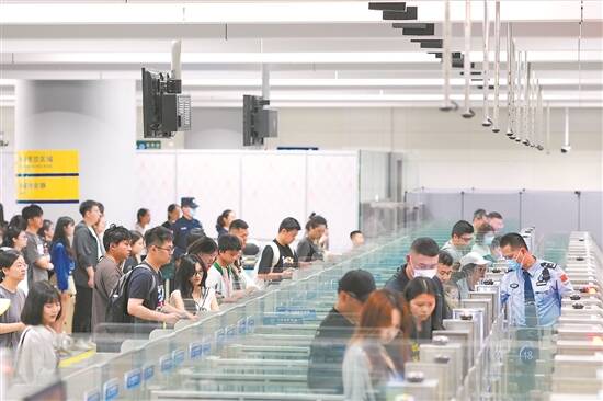 羊城晚报讯记者 宋王群、通讯员王凯玄摄影报道:“五一”假期,西九龙边检站累计查验出入境旅客超58万人次,同比增长30%。