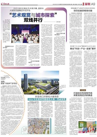 羊城晚报讯 记者李晓旭、通讯员王泽勋摄影报道:随着深港合作的不断深化,位于福田区的新皇岗口岸将成为串联广深港澳科技创新走廊的重要枢纽。5月15日,记者从深圳市建筑工务署获悉,新皇岗口岸联检大楼项目凭借其创新的智能建造技术,在2024年住建部智能建造大赛中荣获一类成果奖。
