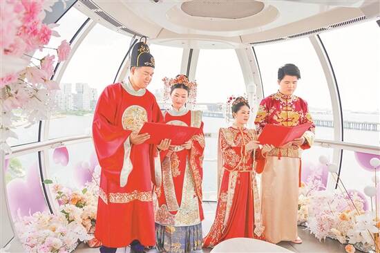 在“520”“七夕”“元宵”等重要节日,策划开展集体婚礼、特色颁证仪式等浪漫活动,扩大当地婚俗文化与“甜蜜经济”影响辐射力。例如,新安街道打造“传统婚俗+现代消费”融合场景;西乡街道将浪漫体验与科学婚育理念相结合;福海街道打造一站式婚恋生态圈等。