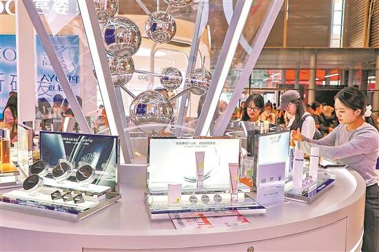 中国美容博览会上的珀莱雅展位 视觉中国供图