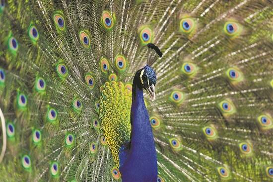 开屏中的蓝孔雀(资料图片)