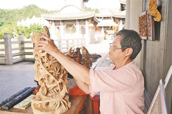 艺人在广济桥桥市上雕刻木雕 曾柯权 摄