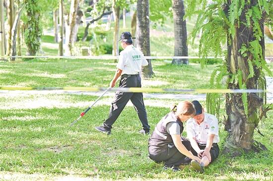 当天下午,深圳城管在园博园仙芷园区域开展毒蛇咬伤模拟演练。演练模拟游客被毒蛇咬伤后,保洁员、安保、医疗等多部门协同响应的全过程,涵盖事件报告、现场管控、伤口处理、医院转运等环节。