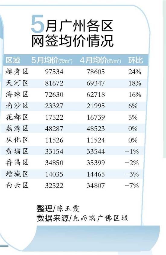 整体均价升至今年新高,越秀区均价逼近10万元/㎡