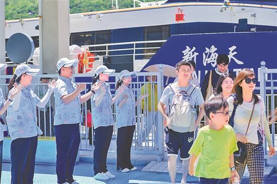 身着统一设计“岛服”的工作人员迎接抵岛游客 受访者供图