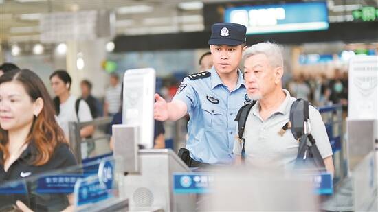 民警协助旅客通关