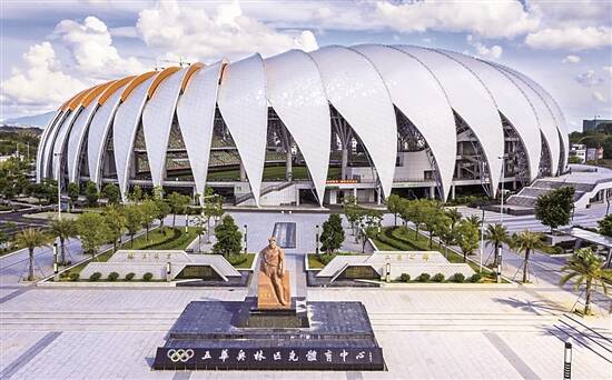 五华奥体中心矗立着李惠堂雕塑 五华县委宣传部供图
