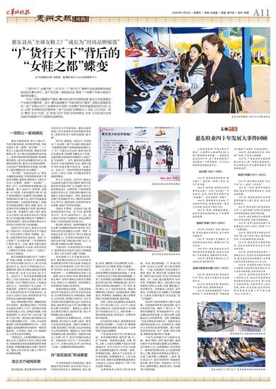 作为广东鞋业重要生产基地,惠州经过多年的深耕发展,鞋业已形成涵盖全产业链的完整体系。其中,惠东县被誉为“中国女鞋生产基地”,其鞋业发展史恰如一部广东鞋业从代工贴牌到自主创新、从规模扩张到质量取胜的进化史;过去,它是“全球每四双女鞋就有一双产自这里”的隐秘巨人;现在,它正经历一场从“幕后”走向“台前”、从“制造”迈向“创造”的深刻转型;未来,它志在成为全球女鞋时尚版图中不可或缺的品牌高地。