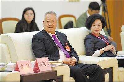 汤超荣(左)在两会分组讨论会上 |