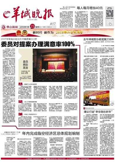 羊城晚报讯 记者张闻、实习生叶璇璇、通讯员邹永榆摄影报道:1月22日,南海区政协十三届三次会议召开。据了解,2017年,南海区政协共立案提案142件,委员对提案办理满意率达到