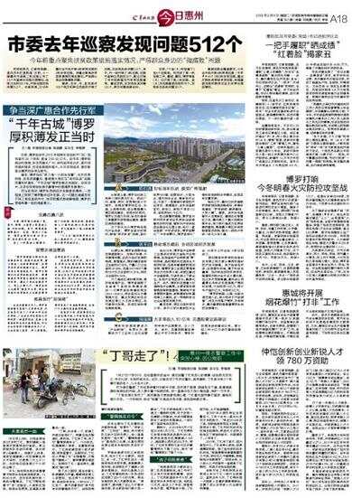 羊城晚报讯 记者陈骁鹏、通讯员市纪宣报道:日前,十一届惠州市委第二轮巡察公布了10个市直单位巡察反馈情况。在刚过去的2017年,开展巡察发现问题512个。记者获悉,2018年惠州全市拟开