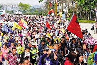 随着发令枪响起,徒步活动正式开始,在春日晨曦的抚慰中,大家一路前行,相互追赶,互相鼓励。沿着设定的环行线路约6.5公里的路程,或走、或慢跑或牵手助跑,场面好生热闹。 老家在湖南、在深圳生活九年的王小姐是众多徒步者一员。她表示,运动需要氛围,一个人很难坚持,现在看到身边的人都在奋力前进,自己就不想半途而废,并表示观音山倡导这种全民生态徒步的方式,值得称赞! 平常运动较少的市民,6.5公里的路程确实有些难度,但身边队友一句句加油鼓劲的话,让他们疲惫的身躯又新生力量。据主办方介绍,观音山多年来一直倡导全民健身,早在2009年东莞观音山主办的首届东莞市观音山万人登山大赛成功举行后,万人登山大赛每年8月举办一届,每届参赛人数都达上万人。不止如此,每年10月份传承家风金秋敬老节活动在东莞观音山举行,不少市民带上父母前来参加活动,登高祈福体验系列孝亲敬老活动,践行孝道,向社会传播优良家风。 东莞观音山被盛赞为“南天圣地 百粤秘境”园内风景秀丽如画,空气清新怡人,沿途志愿者暖心供给服务,途中热心市民加油鼓劲,不仅赢得参赛运动健儿称赞,也获得沿途观光游客一致好评! 据主办方相关负责人介绍,东莞观音山位于粤港澳大湾区城市群中心,凭借独特的地理优势及品牌影响力,可更好地将受众群体覆盖到周边的粤港澳大湾区城市群。并透露此次推出的“春游圣地 蝶恋福山”旅游系列活动之“首届东莞观音山徒步祈福节”只是观音山春季系列活动之一,4月4日(农历二月十九)“观音诞”,适逢观音菩萨圣诞日,届时东莞观音山将举行祈福法会,诚邀广大游客、善信到观音山拜山朝圣、供灯、参加祈愿大会,共沐佛恩。4月5日“清明节”,当天广大市民会趁着节日,前来踏青赏花,届时观音山将举行思亲祈福法会。此外4月份还有“蝴蝶节”都在此系列活动当中,值得广大游客期待。 (常思雯 吴梅菊 杨文)