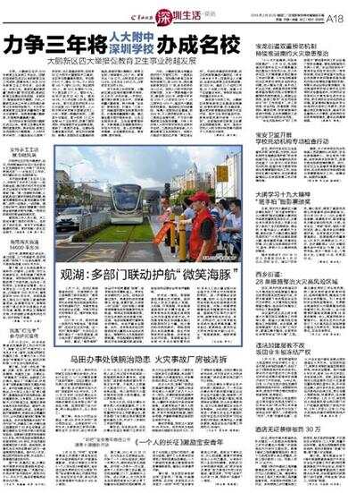 3月17日,龙华区观湖街道执法队、交通预联办、团工委等部门联手发起为“微笑海豚”安全护航行动,通过严厉打击有轨电车沿线违规泥头车污染道路行为、加强有轨电车沿线安全巡查、开展文明出行劝导等方式,维护