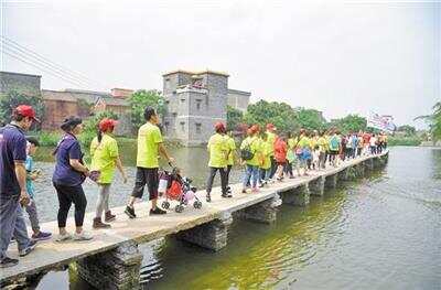 徒步行队伍走在璜矶村石板上 |
