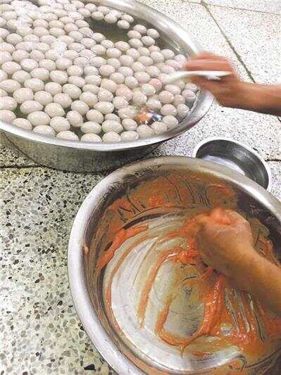 ▲新鲜出锅的潮汕手打牛肉丸 |