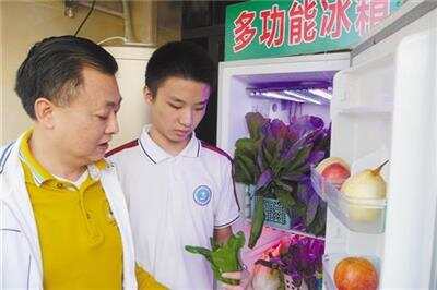 文/图 羊城晚报记者 赵映光 制图/刘栩 “刚刚采摘下来的水果蔬菜,由于离开了母体,物质与能量供应中断,只能慢慢死去。但如果为其创建适宜的人造环境,让果蔬可以继续进行缓慢的光合作用,就能够让它们保持活体状态,继续慢慢活着,并在新陈代谢的过程中降解农残。”这是普宁“父子创客”吴健与其尚在读高一的儿子吴杰阳,对自己发明创造的“多功能冰箱”的原理总结。 据悉,吴健和吴杰阳父子口中的“多功能冰箱”,在过去3年多时间里,通过了数千次的设备实验和技术攻关,已经成功获得了国家知识产权局授予的发明专利证书,并与广东工业大学合作获得2017年广东省应用型科技研发及重大科技成果转化专项资金300万元的扶持。而在去年底和今年3月份,吴杰阳更是凭借着这一发明创造,分别获得了“2017年粤东青少年创客大赛”特等奖和“2017广东省中小学(含中职学校)创客大赛”特等奖。 那么,这款“多功能冰箱”究竟有何神奇之处呢?记者近日专程前往普宁市,到吴健与吴杰阳的实验室里一探究竟。 “异想天开”的创意获国家专利授权 在吴健与吴杰阳的实验室中,记者看到这台“多功能冰箱”外观其实与普通冰箱并无太大差异,冷藏室里安装有一排五颜六色的LED灯并不断闪烁和变换着颜色,加湿装置喷出的雾气在冰箱内弥漫。 得知记者来访后,吴健父子还专程从菜市场买回来了一些水果蔬菜,等记者到达后,吴健打开他的“多功能冰箱”,一边将刚买回来的蔬菜水果放了进去,一边讲述他发明创造的经过。 原来,毕业于广东仲恺农学院的吴健,工作后一直关注着农业领域的最新研究成果,他与多名志同道合的普宁籍硕士、博士一起,组成了涵盖农学、光学、营养学、生物学、生物化学等领域的民间创客团队,通过自筹资金、自购设备、自建实验室,开始研究适合植物生长的“植物生长箱”(即吴健父子创造出来的第一代“多功能冰箱”)。 受父亲的影响,现年16岁的吴杰阳也对这项实验抱有浓厚的兴趣,提供了很多创意设想,并着手制作设备、参与实验。 据介绍,吴杰阳是普宁二中的一名高一学生。自小喜欢观察植物的他,经常对着家里的盆栽发呆。还时不时会向父亲提出一些“异想天开”的问题,如“人是要多晒晒太阳才健康,那家里蔬菜和水果是不是也可以用这样的光来照一照?”对于儿子的发散思维和奇思妙想,父亲吴健总是鼓励他搜集相关资料,自己动手去试一试。 有一天,在阳台上帮忙的吴杰阳,看着几台植物生长箱突发奇想,对父亲说:“爸爸,我看我们的生长箱跟家里的冰箱外形差很像,如果将它们结合起来做一台多功能冰箱,既能够降解农药,还能利用脉冲光让植物‘复活’,岂不是更好?” 于是,一款“多功能冰箱”的创意就此诞生。吴健和吴杰阳很快将这一想法变为现实,2016年5月,经过不断改装和测试后,这款“多功能冰箱”终于成功面世。 为了进一步证实这款冰箱的与众不同,吴健父子搬出了一摞国家知识产权局颁发的发明专利证书和实用新型专利证书,以及PCT国际专利申请通知书。吴健介绍,他们的这些发明创造包括植物生长灯、多功能冰箱、果蔬运输车、智能共享食品柜、智能超市保鲜柜、基于LED脉冲光降解农药的方法等。 记者清点了一下发现,截至目前,吴健和吴杰阳已经拿到了2本发明专利证书、8本实用新型专利证书,另有14项专利正在公开实审,此外还有11项PCT国际专利申请已被受理。其中,“一种植物生长灯”更是获得了日本的实用新型权。 神奇冰箱可“复活”果蔬能降解农残 那么,吴健父子俩创造出来的“多功能冰箱”是如何达到果蔬保鲜和降解农残的呢? 吴健告诉记者,传统冰箱的保鲜方法是用低温让果蔬慢慢死去,而他们的思路则是根据光合作用是植物生长的重要过程这一规律,找寻一种果蔬离开母体后可以继续存活的最适合的光。 原理听起来很简单,不过在实际操作中却非常复杂了。吴杰阳告诉记者,整个“多功能冰箱”中最核心的技术就是控光,他们最开始使用的是白炽灯照射,但白炽灯的光颜色单一,而植物最需要的是红蓝光。后来,他们采用了霓虹灯才解决了光的颜色问题,不过霓虹灯是玻璃材质,用220V的电压,不仅耗电还容易发生爆炸等事故。 最终,经过数千次失败的试验之后,他们才终于克服了这个技术难题,采用红光、蓝光、紫光及其它多种类的辅助光组合成的LED灯光,并在特定转换器的作用下,为果蔬提供植物生长最需要的六种特定波长的光,而且创造性地采用了按照特定规律一明一暗交替变化的脉冲光,让果蔬在冰箱中仍能保持光合作用,保持慢速生长,达到保鲜作用。 吴杰阳从冰箱里拿出一颗长有根须的卷心菜告诉记者,这颗卷心菜买回来的时候根部的切口是平整的,放进“多功能冰箱”十多天后,竟然长出了多条根须,“说明它是在慢慢‘复活’。”吴杰阳说,他还曾用荔枝做实验,原本保鲜期只有几天的“娇贵”荔枝,放进多功能冰箱20天后,依然新鲜水嫩。 除了能让果蔬更好的保险,这款“多功能冰箱”还能一定程度上降解农药残留,甚至是促进植物营养物质的生产。吴杰阳告诉记者,植物本身有新陈代谢功能,通过脉冲光让植物保持新陈代谢降解残留农药,此外,LED灯模拟太阳光发射出来灯光,也能催化降解农药。 为了证明果蔬在“多功能冰箱”中可以有效降解农药残留,吴健父子曾在每天的不同时