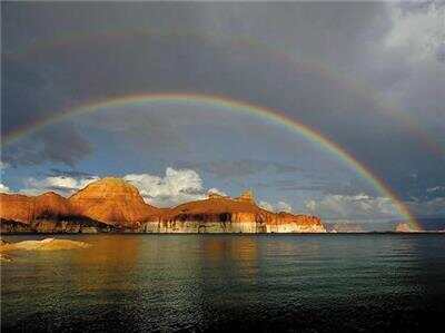 彩虹悬挂在格伦峡谷荒野保护区内鲍威尔湖帕德雷湾上空 |