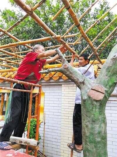文/图 羊城晚报记者 张韬远 在佛山顺德的马岗老年人活动中心里,近两个月来,都是一幅热火朝天的劳动场景。20多名老人在这里齐心协力,自己设计、自己施工,动手改造老人活动中心,将一座废弃多年的篮球场变成了一个“梦想农园”,种植蔬菜、水果和花卉。 如今,农园建设已经完成。国庆前夕,老人们一起埋下了种子,再过两三个月,就能够有第一批收成, 这些瓜果蔬菜不仅能让村里的老人免费品尝,还能够送给残疾人和贫困家庭,促进邻里和谐。 A “梦想农园”一开始遇冷 在马岗市场附近一条小巷子中的“马岗佘文安松柏苑”如今成为了马岗老人活动中心,活动中心里四层的小楼上有着各种各样的活动室,这在社区里已经是不小的活动中心,马岗村的不少老人已经习惯来这里玩耍。不过在过去,老人们最青睐的活动便是打牌、打麻将、下棋…… 2017年,由顺心社工组织开展的众善共融马岗项目团队进驻了马岗老人活动中心。在进驻之前,社工组织对马岗进行了调研发现,该村有1600多名老人,占户籍人口的将近30%,大部分长者独居,属于空巢老人。如何丰富老人们的生活,成了社工们一直思索的问题。社工们组织老人们开展了剪纸、跳操、长者小课堂,农耕服务,志愿者服务,青苗学堂等许许多多的新活动,让这些农村老人的生活丰富了不少。 不过,让顺德社工的负责人蔡小琼心里一直很别扭的是,马岗活动中心的前院郁郁葱葱,而后院一直是一块无人问津的废弃球场。老人们也一直是在前院活动,没办法去到后院。一块这么大面积的地方就这么浪费了吗? 蔡小琼和社工们一合计,不如将这里建成一片“梦想农园”,让老人有着更大的地方活动。不过,让她没想到的是,这一想法,一开始却遇冷。“种了一辈子的地,老了终于可以歇一歇了,没事打打牌不是挺好的吗?”一些老人对此并不太能理解。 不过在蔡小琼看来,梦想农园不光是单纯的种东西,50梦想农园将由社工带领社区50后长者、农耕专业人员共同将杂草丛生的闲置地开发成为园艺疗区,通过一些简单的园艺工作,让长者在农耕中付出,付出中享乐,享乐中疗愈。 其所在的社工机构之前便推出过“积福田———梦想农园”。让一群患有智力残疾、精神残疾、智力精神双重残疾等多类残疾人在农田里学习、娱乐、生活和工作,收获了不错的效果。这一想法,也渐渐得到了老人们的认同,大家开始谋划怎么建这个梦想农园。 B 自己动手打造梦想农园 社工们原本想请专业的施工队来建设的,但是费用却很高,和老人们一聊,老人们却说自己就能够建起来。原来在他们当中,有一名长者是专业的园林设计师。佘裕均,人称均叔,今年68岁,退休已经有了五年,退休前他做了30多年的专业园林设计、建设。不过由于年事已高,均叔基本上已经不再做园林设计的活了。退休之后,他和老伴成了活动中心的常客,两人没事便过来这里玩。当得知活动中心要建一个梦想农园,均叔便欣然答应。 经验丰富的均叔,很快就画出了一个设计方案。他希望将农园划分三个区域,一是搭建一条树藤长廊,可种植百香果、葡萄等爬藤植物,二是蔬果种植区,三是榕树下盆栽观赏区。 这一方案,获得了老人们的认同。很快,均叔便从家里取来了好久没用的工具,开始了建设。虽然只是义务来帮忙,但是均叔还是对自己提出了不低要求——一定用上简单的材料,做出好一些的效果。每天一大早,均叔便一个人来到园子里,早上开工之后,就不能停,中午吃过饭,便又来到工地上,最长的时候一天要干10个小时。 为了使园区显得更漂亮,均叔花了不少心思。农园里的长廊和树桩看起来像是一棵棵老树,其实这些是用钢筋和水泥浇筑的,然后在上面进行反复修饰。均叔的认真使得建设过程复杂了不少,其中光一个柱子,就要做近一个星期。“如果用真的木头,虽然省事不少,但是用不了太久。”均叔说。 这些都是些专业活,只能由均叔一个人做,没有人能帮手,年事已高的均叔干得有些吃力,焊接的时候火花飞到手上,把手都烫伤了几处,他回家搽药膏;做工时要一直蹲着,腰很酸,晚上吃过药,第二天过来接着做……但是均叔却也乐在其中。看着平时自己活动的园区越来越漂亮,他心里十分高兴。 C 小小瓜果推动邻里和谐 就在均叔辛苦作业的同时,其他人也没有歇着。虽然没有专业技术,老人们也是各自出力,有的从后山上砍竹子、有的拉竹子、有的搭起了藤架……在老人们的共同努力下,让这片空地大变样,国庆前夕,农园改造已经基本完成,废弃的球场也大变样。 农园建好之后,剩下的便是耕种了。马岗过去以农业为主,这些老人很多都种了大半辈子的地,对此十分有信心。当社工提出要组建一支农耕队,老人们便纷纷报名参加,最后成立了一支由20名老人组成的农耕队。此后,农园里要栽什么菜、种什么花,老人们还能通过农耕队议事堂,一起商议决定。 国庆节前后,老人们已经开始在土地种下了种子。再过半个多月就会有东西长出来、两个月后蔬菜也可以出来、等到春节之时,藤蔓慢慢爬到大树之上,假树上也会长出花来,到时候将会更加漂亮。 农耕队的刘阿姨还兴奋地告诉记者,“再有两个月,我们便能在素食饭堂里,吃到自己种植的水果、蔬菜。”早在去年七月,社工站便组织起在老人活动中心的爱心素食饭堂,目前,素食饭堂每周一到五中午提供饭菜,每天有超过80名老人在这