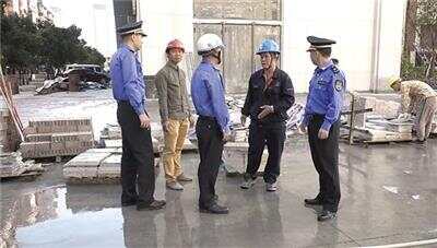 执法人员在人民路南侧发现某建筑施工工地在路边堆放了大量建筑施工物料 |