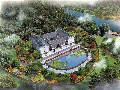 拆旧复垦后的岳潭村效果图,图中建筑物为红十一军成立时的军部旧址 |