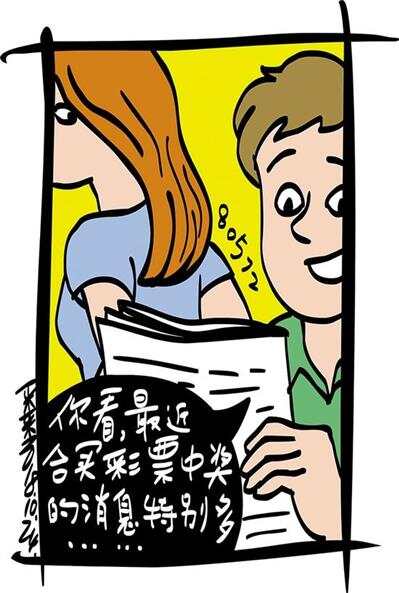 插图 采采 这天,方岭拿着报纸对高霞说:“你看,最近合买彩票中奖的消息特别多,这说明还是人多力量大啊!要不咱俩也合买吧,早日中个大奖,然后咱俩平分,各自过各自的幸福日子去!”看在共同一致的目标彩票大奖上,两人这次倒没有争吵,还很快达成了协议。协议规定,两人每期合买一张8个号码的复式票,每人负责出4个号码,中奖平分。 谁也没想到,从合买开始那天起,两人之间的争吵变少了,实在是不好意思张嘴啊!没中奖?这里面不是也有你选的号吗,有什么可说的?中奖了,这军功章上有你的一半也有我的一半啊,有什么可争的?两人之间慢慢开始互相体谅了:“你选的号没中,我选的不也没中吗?”“这次没中奖,里面也有我一半的原因。” 慢慢地,两人在生活中也会互相体谅了,家务活两人也会合着干了,回老家两边也能轮着来了,对于生活中一些小习惯也会互相包容了,两人的口头禅也从“这事都怨你”变成了“这事有我的一半责任”。 共同承担责任的合买让两人懂得了互相体谅,日子越过越顺。有时候两人还拿着合买的彩票开玩笑:“中奖了还离婚吗?”“中奖太难了,凑合着过吧!哈哈哈……” (曹文学)