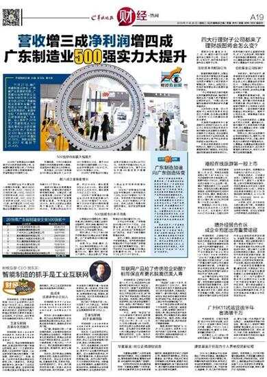 营收增三成净利润增四成 广东制造业500强实力大提升