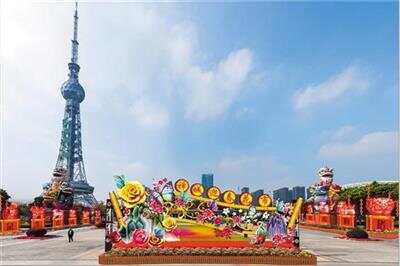 2019年禅城区文华迎春花市东牌楼搭建有十二生肖扎作 |