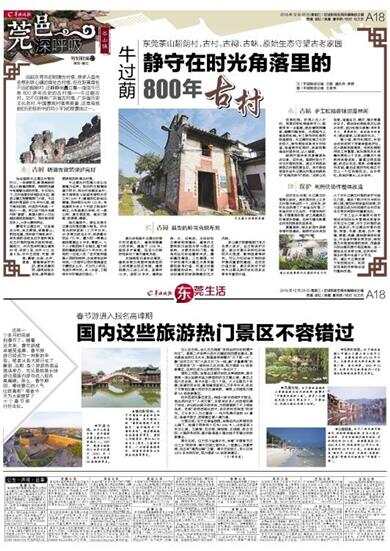 图/羊城晚报记者 王俊伟 说起东莞市的明清古村落,很多人首先会想到茶山镇的南社古村落,但在距离南社不远的超朗村,还静静地矗立着一座迄今已有800多年历史的古村落——牛过蓢古村。它不仅拥有广东省古村落、广东省历史文化名村、中国景观村落等美誉,还是电视剧《历史转折中的邓小平》的取景地之一。 壹 古村 明清古建筑保护完好 站在超朗牛过蓢古村落的村口,一条被野花、野草掩映的泥土小路横在眼前,两侧的池塘半包围着古老的村落。冬日阳光下,古村老屋安详地卧在水边。据茶山镇文物管理部门介绍,牛过蓢古村落面积0.76平方公里,建于南宋时期,村民历代均是一个姓氏——麦,所以这个地方也被叫做“麦屋”。麦屋大部分人已出港经商或旅居海外,现村里有两百多人,大多从事种养业。 静观牛过蓢古村,它呈梳式分布,坐北朝南,背靠青山,前临池塘,茂林修竹掩映其中。其优美的自然生态尽显岭南生态古村落的独特风格和神韵。据统计,村内现有明清古建筑80间、宗祠3座、古井4口、古巷6条,村中古民居、书屋、祠堂、碉楼、古庙、古井、里巷、围墙等保护完好,更有完善的明、暗两级排水系统,是明清时期典型的岭南古村落。 牛过蓢古村范围大体以古围墙为边界,现存的古围墙始建于明末,将古村包围在其中,其中南侧至今保留有南明永历三年(1649年)建造的红砂岩古围墙,现存部分长约133米。传统建筑中有6个市级文物保护单位,分别是麦氏宗祠、仪一麦公祠、麦日桃故居、接龙门更楼、西更楼、碉楼。 除古建筑外,原生态是牛过蓢古村落的最大特色。村中有古树林面积1.2万平方米,40多棵古树名木中,树龄最长的达770年。最大的一棵高山榕树腰围达8米多,需要六、七个人才能把树干合抱住,整个树荫的覆盖面积近六十平方米。当地的一位老人说:“在村里种植高大茂密的树种,古来便有这种传统,一方面可以把村落掩盖在宁静的乡土中,不为外人所见,免受外界打扰;另一方面,又能将村中环境进行美化。” 贰 古祠 典型的岭南合院布局 麦氏宗祠是牛过蓢古村落中历史最悠久、建筑规模最大的宗祠,建造于1316年,虽经多次修葺,但至今仍较好地保存了清末建筑风格。 羊城晚报记者走访看到,建筑形制为我国岭南典型的三间两廊合院式布局,建筑规模为三进三开间,面阔约10米,进深20多米。建筑由砖、木、石构成,主体材料为青砖砌筑墙体,建筑内主要构架为抬梁与穿斗混合式结构,主要支柱和门框、墙角均由红砂岩雕琢而成。檐板雕花精美,工艺精湛,对于研究清代木雕艺术具有重要的参考价值。而通过对墙体壁画的研究,则可以了解当时建筑的审美情趣和艺术风格。 茶山镇文物管理部门有关负责人表示,在文物保护方面,通过对麦氏宗祠红砂岩的风化程度、影响因素等研究,可以为红砂岩文物的保护提供重要的基础。在历史价值方面,麦氏宗祠对于研究牛过蓢氏族历史和民系迁移有丰富的价值。 叁 古味 手工松糕香味弥漫林间 说起松糕,东莞人无人不知,刚蒸好的松糕香软可口,略微带有一点黏感,散发着阵阵糯香,越嚼则越有味。比起超市上售卖的松糕,手工制作的松糕则味道更佳。牛过蓢的松糕文化历史悠久,制作原始而具有乡村味道,每逢制作松糕时,其香味飘逸在村里林间,让人垂涎。 超朗村宣传委员麦惠棠告诉记者,近年来,超朗村致力于对古村落的发展,通过不同活动展现古村落的原生态,其中就包括每年在牛过蓢古村落古树群举行“松糕风味节”活动。“在茶山风俗里,每逢生日、满月、嫁女等喜庆日子,都会送松糕给亲友以表示庆贺。因为松糕与承高(指快高长大、事事顺利、越来越好的意思)接近谐音,以取其好兆头。” 据介绍,制作松糕时,村民会在林间树下用青砖搭起炉灶,在大锅里架起蒸架。传统松糕制作的工序繁复,首先得用井水将糯米浸泡三个日夜,在糯米干透前将其舂成粉,重复过筛至细腻,然后以花生、草果、砂糖等制作成馅,最后在蒸好的松糕正中印上一个红色梅花点,白中带红,取其好意头,以示吉利。 肆 保护 利用优势作整体改造 在历史长河里,牛过蓢古村落得以保存,是东莞历史上众多古村落中幸运的一个。近年来,该村先后获得了广东省古村落、广东省历史文化名村、中国传统村落、中国景观村落、珠三角最美古村等诸多美誉,也吸引着无数慕名而来的游客流连其间。 麦惠棠称,结合东莞市美丽幸福村居建设,超朗村近年来加大了对牛过蓢古村落的保护与活化力度,建设了数万平方米的古树公园,增加休闲绿道和座椅,如今这里已成为村民缅怀古村历史及日常休闲娱乐的重要去处。 广东工业大学建筑与城市规划学院院长朱雪梅此前曾多次来过牛过蓢,对于古村落的保护,她表示,牛过蓢古村落内民居、祠堂、书屋、里巷、古井、围墙、更楼、池塘、榕树群等样样皆全,并且保护得非常完好,特别是古村落里相接的树林、茂盛参天的古榕和翠竹相互掩映。这一原始生态非常壮观,在所有岭南古村落中也是十分罕见的。建议牛过蓢在接下来的规划中,利用好自身的优势特点进行整体改造。