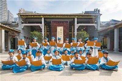 小朋友穿着汉服学习《三字经》 |