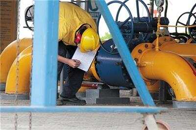 工作人员在燃气站日常巡查 羊城晚报记者 王俊伟 摄 |