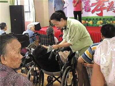 戒毒后的温月(图中黄衣服者)参加社工担任志愿者,热心地帮助他人 |