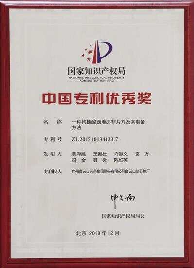 凭借良好的经济效益和社会效益,白云山金戈2018年荣获“中国专利优秀奖”;同时,白云山制药总厂还在2018年获得了“国家知识产权示范企业”、“全国模范职工之家”、“两化融合贯标评定企业”等众多重大荣誉,走上了高质量发展之路。黄海文厂长获得“2018年度广东省优秀企业家”称号。