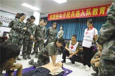 南澳县女子民兵练习战场止血包扎、固定搬运和心肺复苏等急救技能 |
