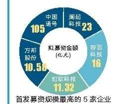 首发企业以制造业为主 根据上交所安排,首批和投资者见面的科创板企业有25家,整体来看,这些企业主要分布在7个行业,以制造业为主。其中共有9家企业来自计算机、通信和其他电子设备制造业,8家企业来自专用设备制造业,占比最高。从地域分布上看,北京和上海企业数量最多,均有5家,江苏企业有4家,广东和浙江企业分别有3家。 从募资金额上看,25家首批企业合计募资金额高达310.89亿元,平均每家企业募资12.44亿元。最高的是中国通号,募资金额高达105亿元,排在其后的澜起科技和容百科技募资金额分别为23亿元和16亿元。 与主板相比,科创板打破了以往A股主板以23倍市盈率为上限的定价模式,以市场化定价为主导。目前,首批上市公司已全部公布了发行价格,最高的是乐鑫科技,首发价格为62.60元。方邦股份和南微医学的首发价格分别为53.88元和52.45元,排在第二、三位。心脉医疗为46.23元,排在第四位,其余个股的首发价格都在40元以下。 从市盈率上看,除了中国通号之外,其他的24家市盈率皆超过以往的上限23倍,25家公司的平均市盈率高达53.40倍。最高的是中微公司,发行市盈率为170.75倍。睿创微纳和虹软科技分别为79.09倍和74.41倍,排在第二、三位。首发市盈率超过50倍的企业共有9家。 而发行市盈率最低的是募资规模较大的中国通号,发行市盈率为18.80倍,排在其后的沃尔德、天宜上佳、嘉元科技、方邦股份、心脉医疗、杭可科技、南微医学发行市盈率都在40倍以内。 去年合计营收近600亿元 上述25家公司的经营成色如何?从2018年营业收入、净利润和研发投入的情况看,首批科创板公司2018年平均实现营业收入23.83亿元,合计营收595.86亿元,平均实现净利润约3亿元,合计实现净利润74.92亿元,平均研发投入为1.24亿元。 其中,2018年营收和净利润最高的是中国通号,年营收高达400.13亿元,实现净利润37.17亿元。营收排在第二位的是容百科技,去年实现营收30.41亿元,此外,共有10家公司去年营收超过10亿元。 从净利润表现上看,去年首批科创板公司全部盈利,除了净利润最高的中国通号外,其余企业去年净利润均不超过10亿元。澜起科技以7.37亿元的净利润排在第二位,其余企业净利润均不超过3亿元。 从研发投入上看,去年25家企业合计投入31亿元,整体研发投入占营业收入的比例达5.20%,高于沪深两市主板水平。 本版制表/黄文倩