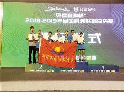 昨日,记者从顺德区勒流街道获悉,在7月19-21日举行的全国跳绳联赛总决赛中,勒流街道新球初级中学斩获六金四银,东风小学斩获七金六银三铜。难得的是,新球初级中学的罗威同学在连续三摇跳项目中,以494个的成绩打破该项目的全国纪录。 据了解,全国跳绳联赛总决赛作为国内跳绳水平较高的国家级赛事,吸引了来自全国21个省、市、自治区的89个单位共计94支队伍1000余名高水平跳绳选手参加。 A 破连续三摇跳项目全国纪录 据勒流东风小学跳绳教练麦显平介绍,该校此次选派了12名队员参赛,年龄最小的是8岁的二年级学生。此次比赛中,该校跳绳队斩获七金六银三铜。同样是来自勒流的新球初级中学在此次总决赛中也斩获六金四银。该校跳绳教练怀伟业表示:“本届比赛是该校自2013年组建跳绳队以来,参加的难度最大、对手最强、级别最高的一次全国跳绳大赛。” 记者了解到,新球初级中学的罗威、肖韩香以及杨连群,从东风小学开始就结缘跳绳,是曾多次代表学校参加全国性乃至世界性的跳绳比赛的“老将”。在此次比赛中,他们都取得了不俗的成绩,其中,罗威在连续三摇跳项目中以494个的成绩打破该项目的全国纪录。 怀伟业介绍,他们要在学习之余,进行早晚两次训练。跳绳运动相对简单,没有太过复杂的技术,但是对于运动员的耐力和速度都是一次巨大的挑战,三分钟的单摇,其运动量不亚于一次长跑,这也意味着需要运动员进行长期艰苦反复的训练。“训练的地方常常是湿的,都是他们流下来的汗水。”怀伟业说。 B 初高中携手培养跳绳人才 两所来自顺德区勒流街道的普通小学和初中为什么能在正式的国家级赛事中屡获佳绩?据了解,在顺德诸多中小学校当中,东风小学可谓是一所名不见经传的小学校。多年以前,由于学校场地有限而不能开展大规模体育项目,校长温克健决心在校内推广花式跳绳运动,“刚开始确实是为了让孩子们动起来。”温克健说,开始正式推广后,几乎所有的孩子都迷上了花式跳绳,因为花式多、不乏味,适合活泼好动的孩子们。 随后,学校开始筹资送这些学生参加国内的跳绳大赛。在此后的各类国家级、世界级的跳绳大赛中,都有来自东风小学的小运动员的身影。而东风小学的不少优秀跳绳苗子毕业之后走进了新球初级中学继续学习,跳绳训练也始终没有落下。 值得注意的是,从2012年起,新球初级中学和东风小学就通过组建跳绳队伍等方式加强校际联动,目前已形成了九年一贯制的跳绳项目体育人才培养机制,达成了跳绳人才培养的小学和初中阶段的衔接。 对于未来新球初级中学的跳绳体育项目特色发展,该校校长何兴球表示,将在原有基础上加大人力物力财力的投入,把这项工作做强做大,做成学校品牌,并将以点带面,全面铺开。针对目前师资比较缺乏的问题,何兴球表示将培养一批强有力的老师队伍。“目前初(中)小(学)衔接比较好,下一步准备探索初(中)高(中)衔接的路子,让体育特长生有更好的出路。”何兴球说,此外,该校还考虑引进社会资源(比如用企业冠名的方式)来支持跳绳体育事业的发展,让这些跳绳小将在更广阔的舞台上展现自我。