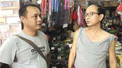 梁毅文(左)同村民聊天,了解村民遇到的问题 |