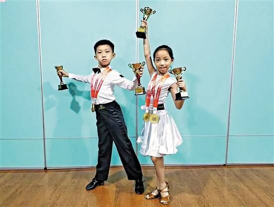 在2019年东莞第五届青少年体育舞蹈国际公开赛中,8岁的叶苑雯和10岁的李文栋共斩获了5个项目的冠军 |