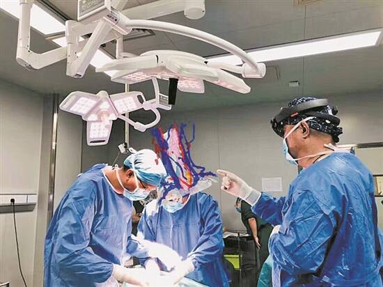8月27日,中山大学附属第五医院(下简称中大五院)手术室内上演了一出“科幻大片”,该院大外科主任兼胸外科主任曹庆东教授在MR眼镜的助力下,成功为患者切除了纵隔上的肿瘤,这是国内首例“单孔充气式纵隔腔镜联合混合现实(MR)影像技术复杂纵隔肿瘤切除术”。 虚拟与现实结合 手术室上演“科幻大片” 家住西北的马女士两年前体检发现纵隔长了一个肿瘤,因当时没有任何症状,当地医生建议定期复查,此后马女士逐渐感到进食时有异物感,后逐渐加重并开始间断出现进食哽噎感。 去年7月复查时发现肿瘤长大了一倍,马女士在家人的陪同下,开始了长达一年的寻医之旅。由于肿瘤位置特殊,周围有气管、食管、大血管、神经和淋巴管等重要的组织结构,如同血管神经丛中的“定时炸弹”,一旦术中误伤周围任何结构,都将是灾难。有不少医院的专家都建议马女士劈开胸骨做手术,这吓坏了马女士夫妇。 今年7月,马女士经朋友介绍,找到了曹庆东。在详细询问患者病史,仔细研究其在多家医院就诊的资料后,曹庆东教授告知患者和家属:“从目前的检查结果看,有九成的把握可以采用微创手术技术完成,但还需要进一步采用更先进的影像技术明确肿瘤的生长情况”。 住院3天后,马女士的影像检查资料被清晰地制作成三维影像,肿瘤清晰地展现在大家面前。经过一周精心准备,8月27日上午9时,一场“科幻大片”在中大五院手术室上演了。 曹庆东教授首先在马女士的左颈部做了一个长约4厘米的横形切口,建立起一条纵隔通道,在纵隔腔镜下仔细地解剖肿瘤。在手术关键部位,曹庆东教授戴上了MR眼镜,眼前立刻呈现了一幅十分清哳的虚拟三维影像,供应肿瘤的滋养血管清晰可见,在这一影像的引导下,安全地切断了这根发自右侧锁骨下动脉的血管,并将肿瘤与周围的血管、神经、甲状腺、气管和食管等组织结构分离开来。整个手术过程非常顺利,仅用时45分钟,出血5毫升,伤口仅4厘米左右。患者手术后恢复非常顺利,当天下午即可下地活动,正常进食。 “大森林里找蘑菇” MR技术为手术做“导航” 曹庆东教授介绍,在这个手术中,找到肿瘤的难度不亚于在大森林里找蘑菇。MR技术将患者CT/核磁等检查数据可视化,术中,医生佩戴MR眼镜即可全息观看病灶立体影像。“我们先为患者做普通的增强CT,根据增强CT和核磁共振的数据,用软件重建了一个三维立体的结构图。”曹庆东教授表示,“结构图最大特点是可以清晰地看到肿瘤生长的具体位置、大小、形态、与各个器官的关系,最后还可以清晰地看到肿瘤的血液供应来自哪里,这个技术能让医生更安全、更精准、更高效地开展手术。” 结构性手术让不少医生很是头疼,曹庆东教授介绍,现在微创手术一般利用腔镜技术,医生们对着电视屏幕做手术,各个器官之间的关系通过普通影像很难看得到,很多细小血管破裂可能会造成严重出血甚至无法控制。“现在有了这个技术,结构性越复杂给予我们的支持越强大,做手术拿不稳,就看一下三维立体图像,结合术中的图像,判断下一步需要动的结构是什么,这个技术在手术中可以说起到了导航的作用。” 除了在手术中“一显身手”,MR技术还可以做模拟手术。“为了保证手术的安全性,我们对照虚拟三维影像进行了多次模拟手术演练,设计了多套手术方案,对术中可能出现的突发状况做好了多种应对预案。”曹庆东教授表示,两项高精尖技术的完美结合,使得这个看似不可能用微创技术完成的手术变为可能。 记者了解到,现今的MR技术现在还没有实现与手同步,也还没有真正达到影像与人体重叠,这是该技术今后发展的方向。曹庆东教授介绍,该技术今后还将应用于肺部手术。