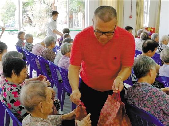 9月10日,江门“身边好人”、菲普森(江门)电器制造有限公司总经理罗球锐,带着员工和家属到江门市福利院,为老人和孩子送上了800多份节日慰问品,这是他连续第12年到福利院开展中秋送温暖活动。他表示,未来还会继续关爱弱势群体。 (谭耀广)