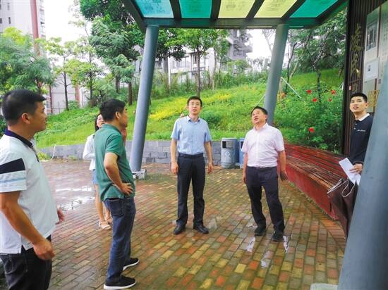街道党工委书记刘渊(右三)在上李朗社区检查创文工作 |