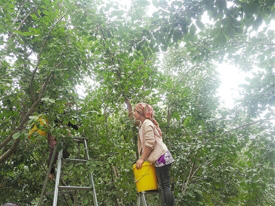 正在摘果子的伽师农民 |